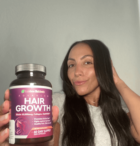 "Me sentí devastada cuando mi cabello comenzó a adelgazarse después de la menopausia. ¡Mi médico me recomendó vitaminas avanzadas para el crecimiento del cabello y estoy muy agradecida! Después de cuatro meses, mi cabello está más abundante y brillante de lo que había estado en años. ¡Incluso mi estilista notó la diferencia!"